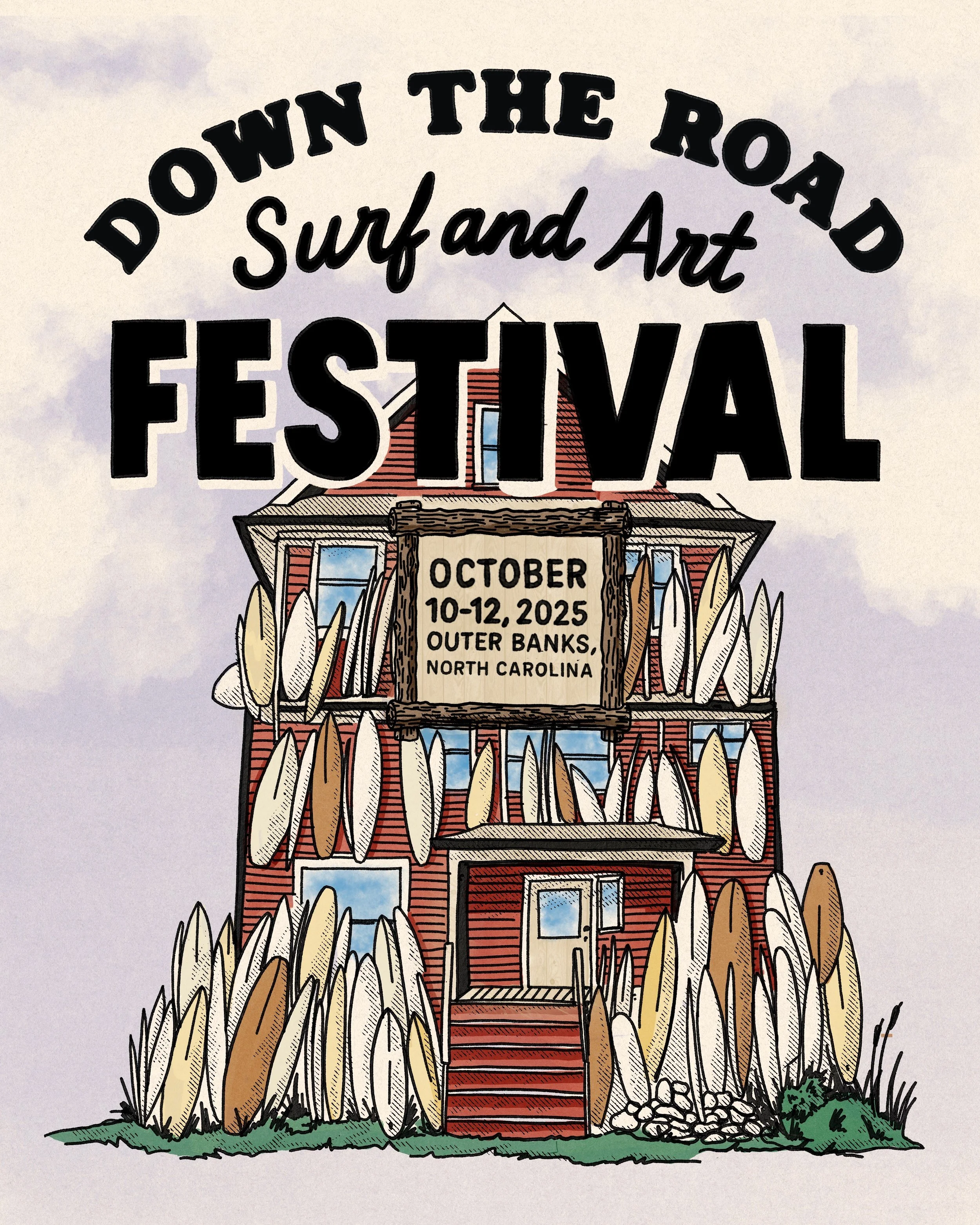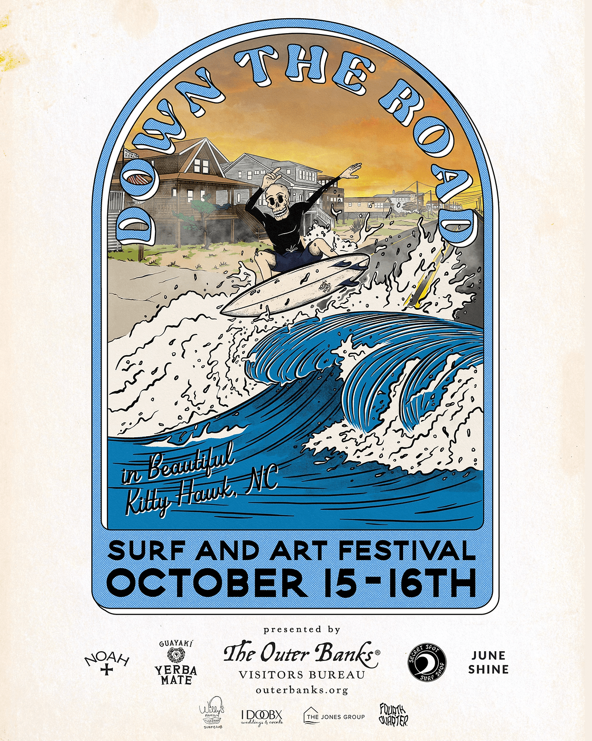 October 2025 Surf & Art FestivalThe Outer Banks, NC Down the Road is an annual festival in Kitty Hawk, NC celebrating Outer Banks surfing, art, music and culture. Past Events 2022 2021